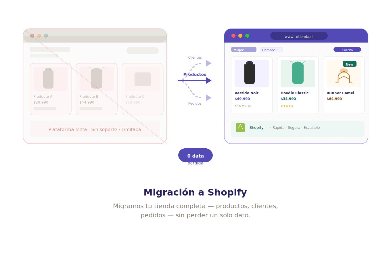 Migramos y rediseñamos tu tienda a Shopify desde cualquier plataforma. Ganarás velocidad y eficiencia sin esfuerzo.